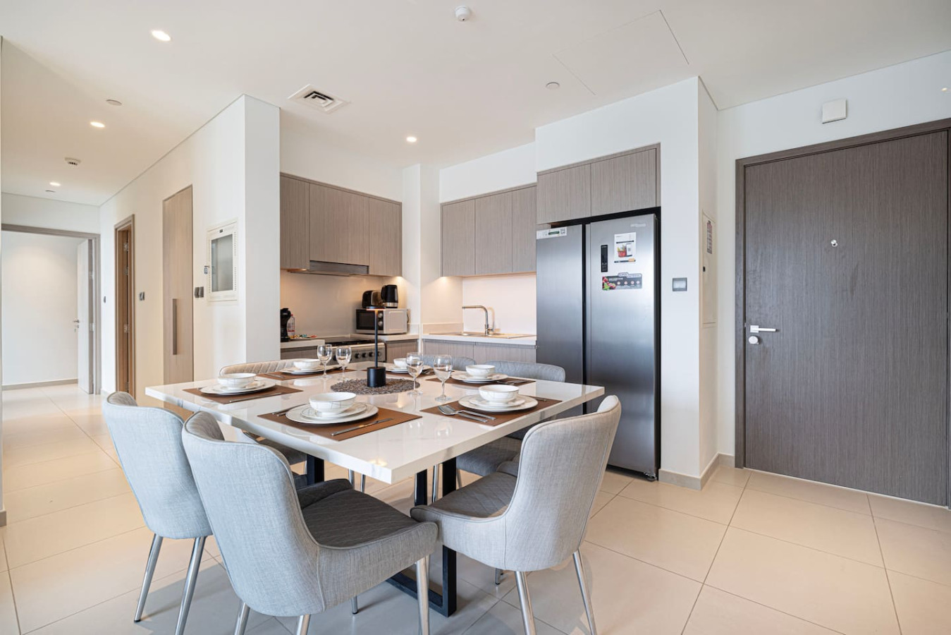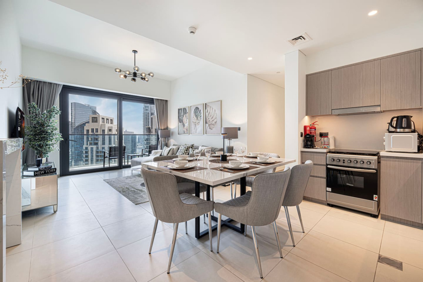 Stay in this stylish and family-friendly 2-bedroom apartment in Act 2, Downtown Dubai, just steps from Burj Khalifa, Dubai Opera, and Dubai Mall. Enjoy modern interiors, cozy bedrooms, and a fully equipped kitchen, ideal for families and travelers seeking a central, walkable, and luxury stay in the heart of Downtown.