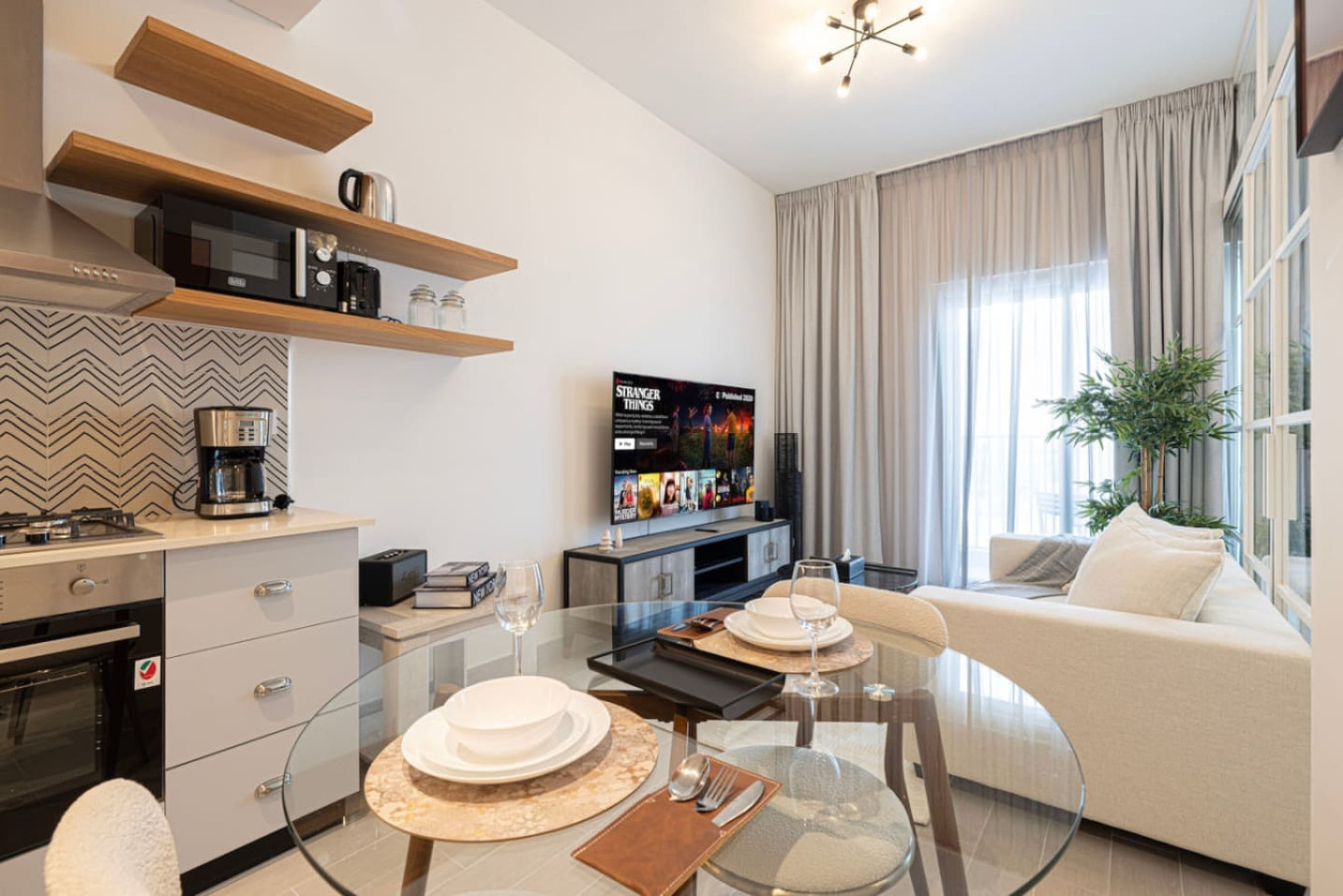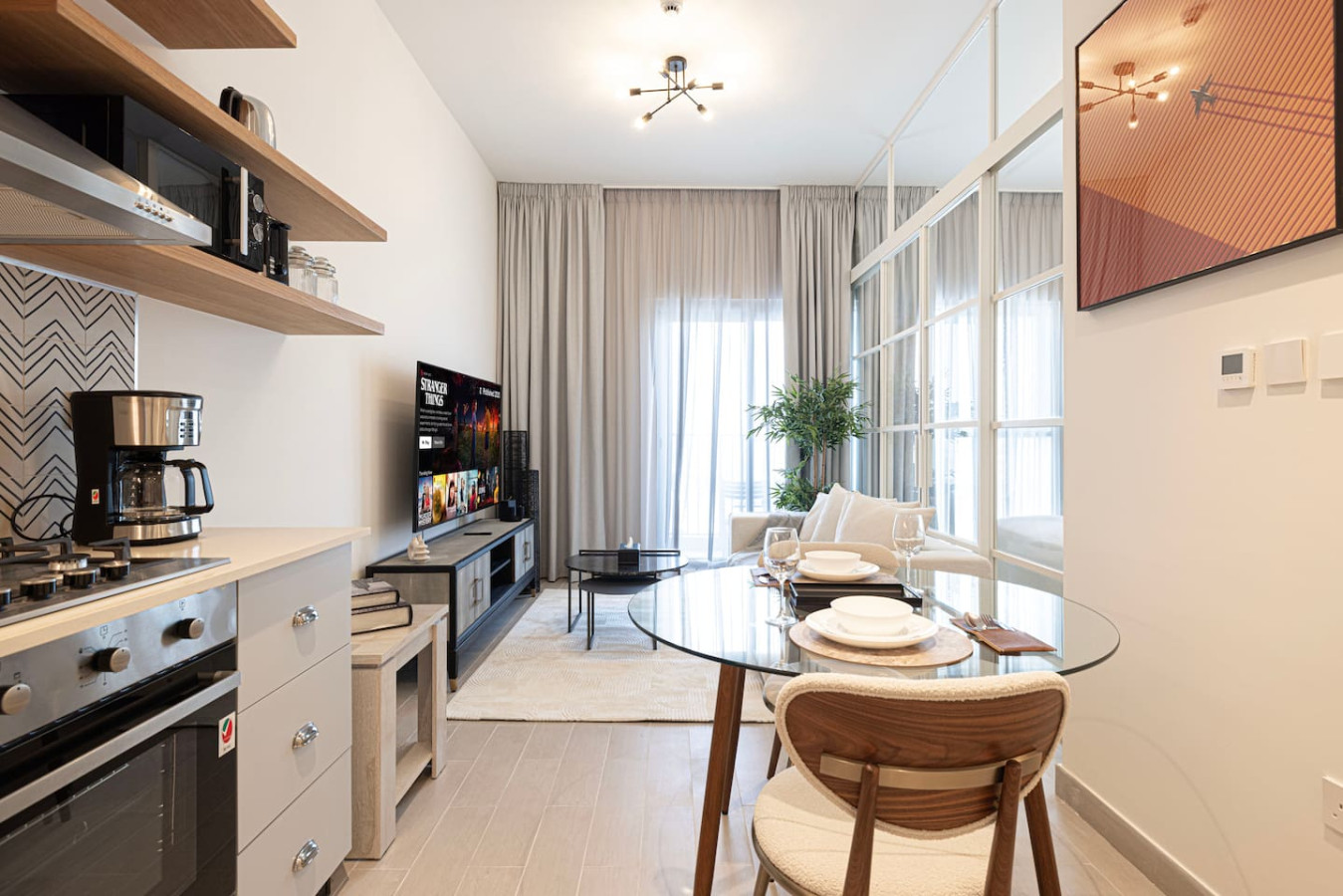 Welcome to your elegant retreat in Dubai Hills Estate, designed for comfort, convenience, and relaxation. This thoughtfully curated apartment offers a bright living space, cozy bedroom, sleek bathroom, and a fully equipped kitchen — perfect for leisure, business, or long stays. Guests enjoy serene surroundings with cafés, parks, and walking paths nearby.