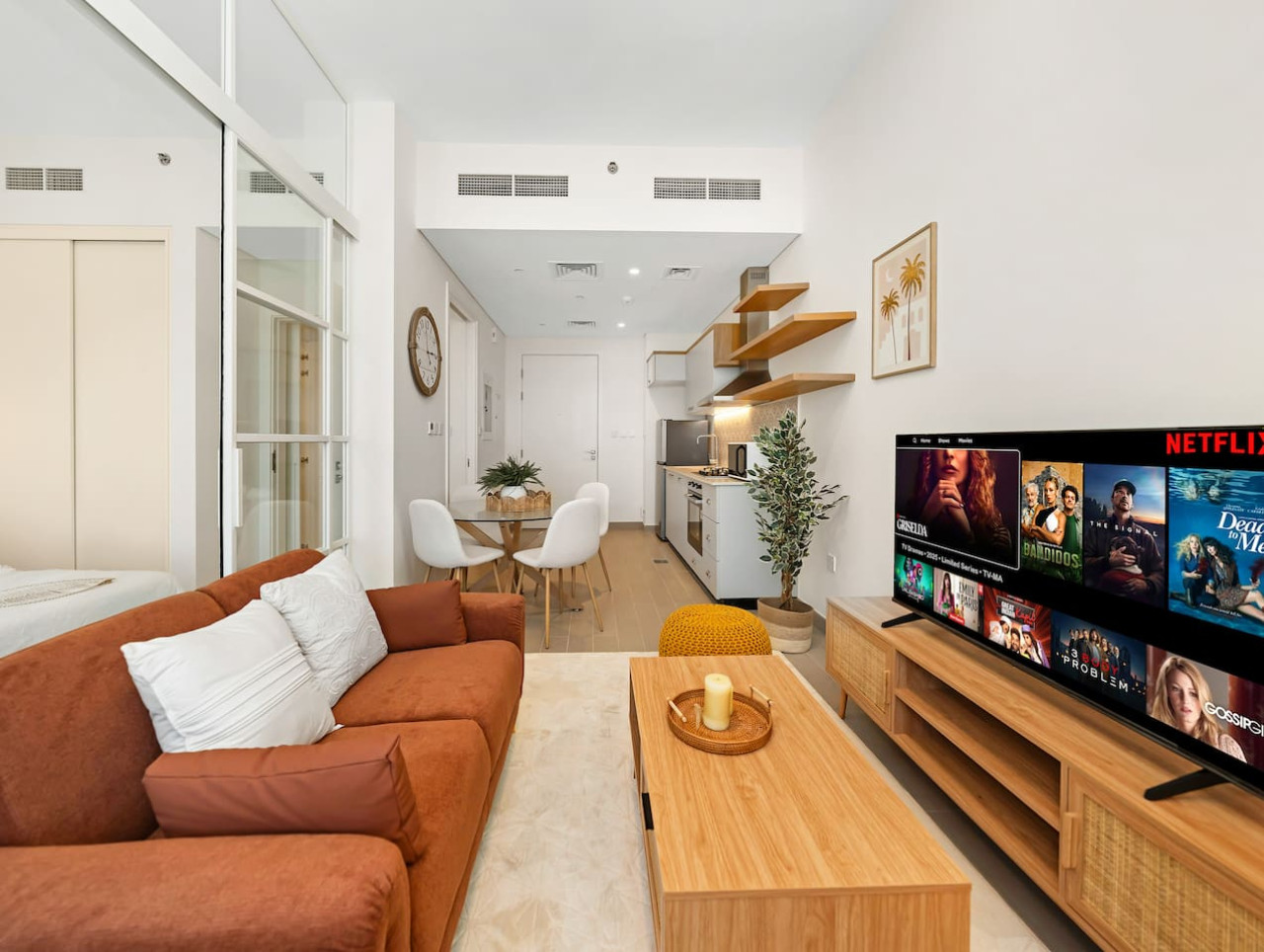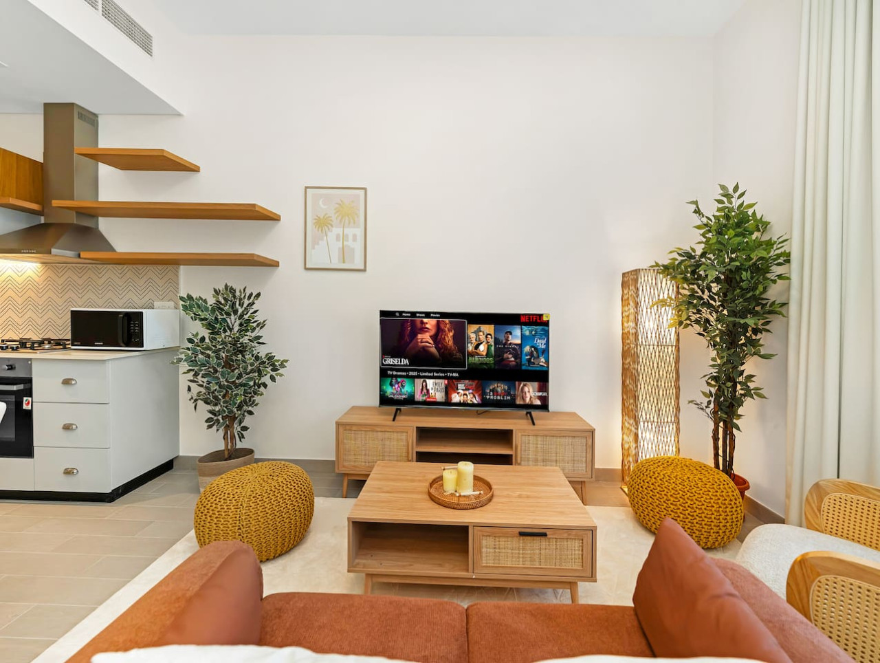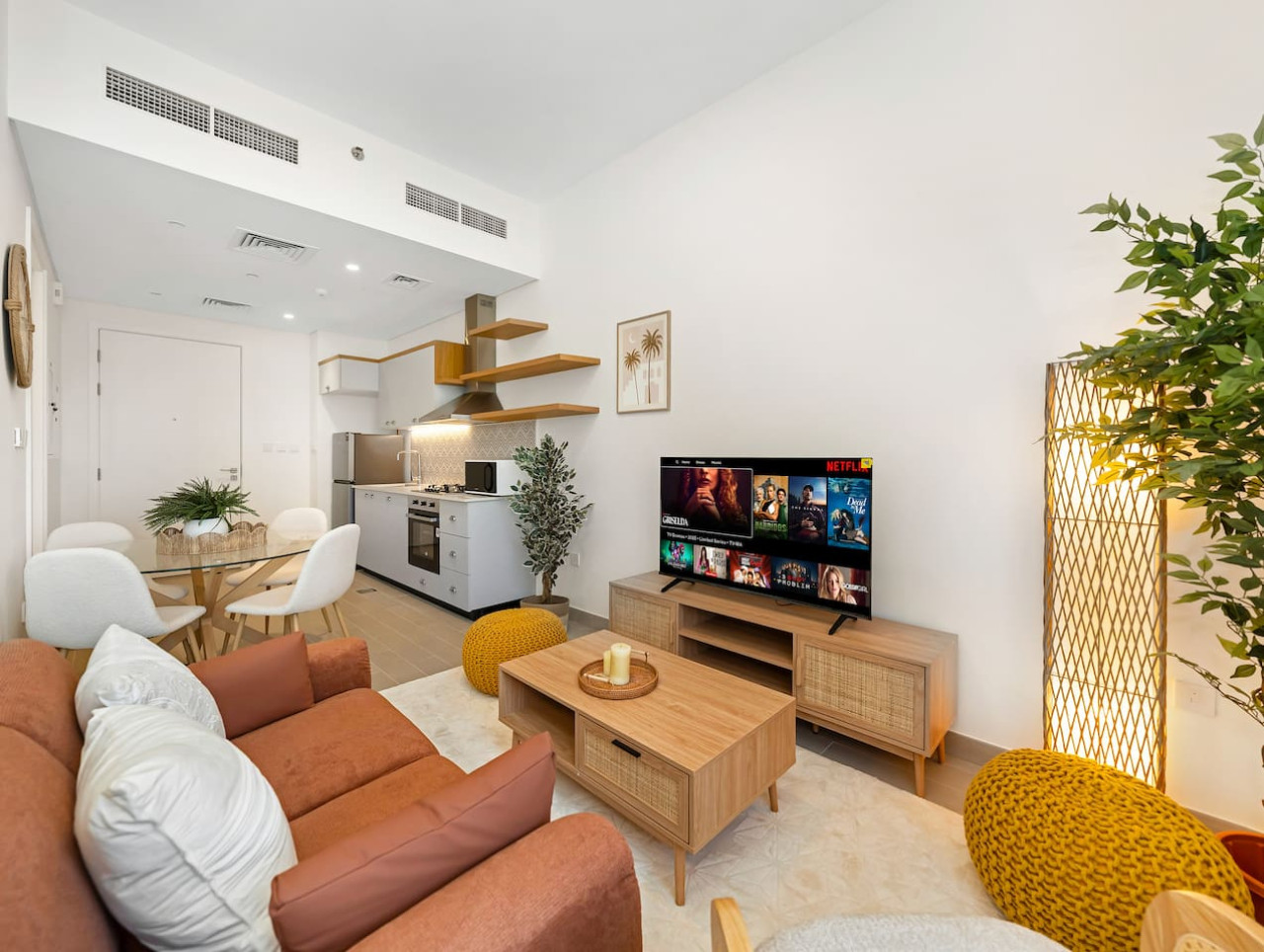 Welcome to your relaxing Dubai Hills retreat, thoughtfully designed for comfort, style, and convenience. This bright apartment features a cozy living area, a comfortable bedroom with hotel-quality linens, a fully equipped kitchen, sleek modern bathroom, and an in-unit washer — ideal for business travelers, couples, solo guests, and long-term stays.