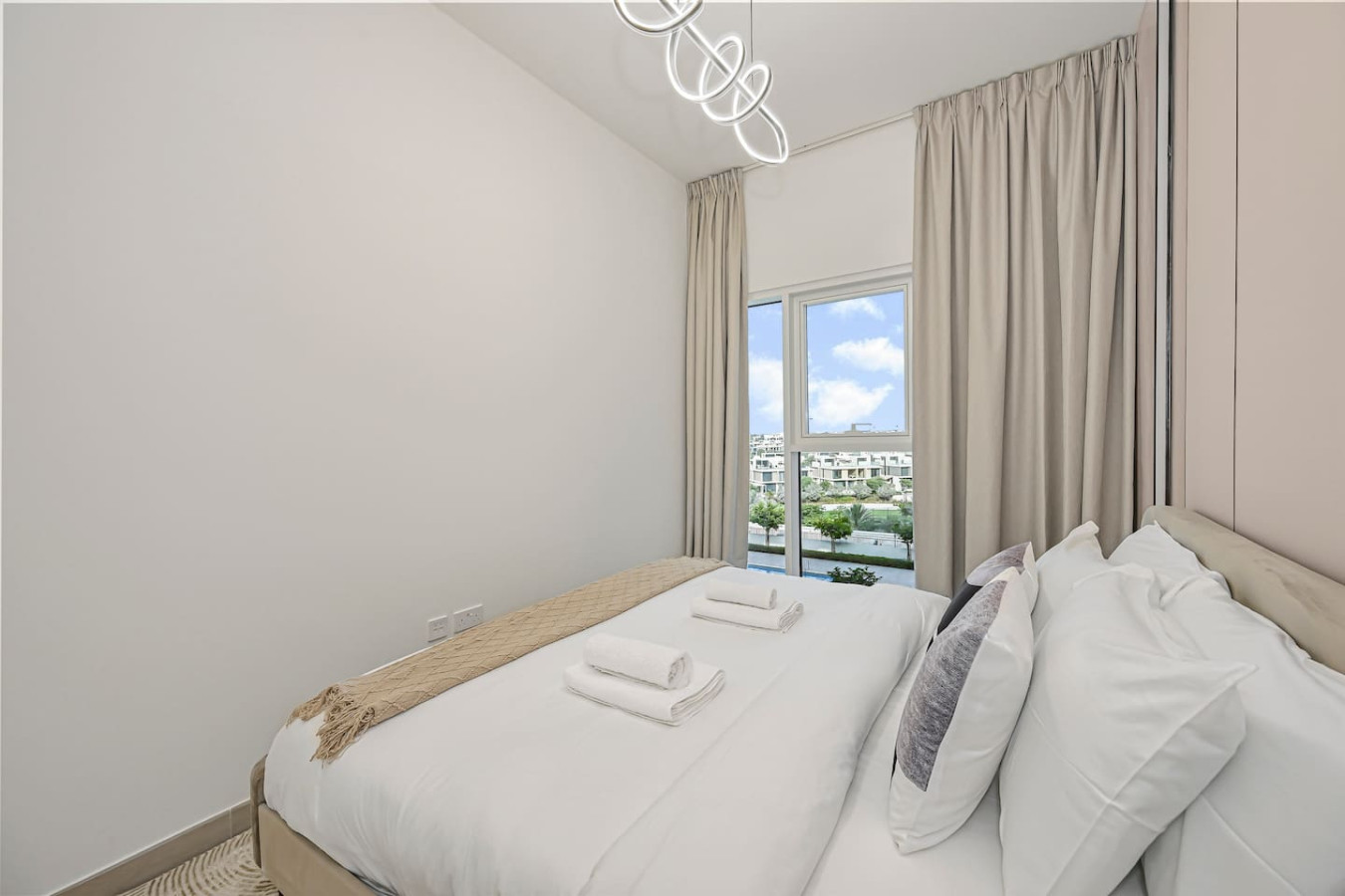 Enjoy a modern and comfortable stay in this luxury 2-bedroom apartment in GolfVille, Dubai Hills Estate. Designed for families, couples, and business travelers, this stylish home offers bright interiors, a peaceful setting, and everything needed for a relaxing Dubai stay in one of the city’s greenest communities.