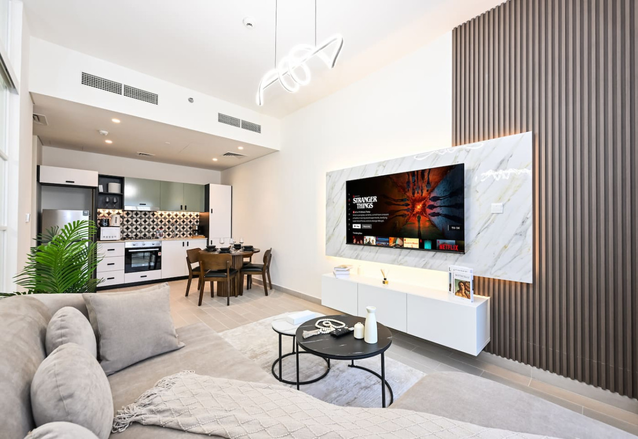 Welcome to your modern and stylish 2BR retreat in GolfVille, Dubai Hills — a bright and elegant space designed for pure comfort. The apartment features a warm, open layout with cozy interiors, making it ideal for both short and extended stays.